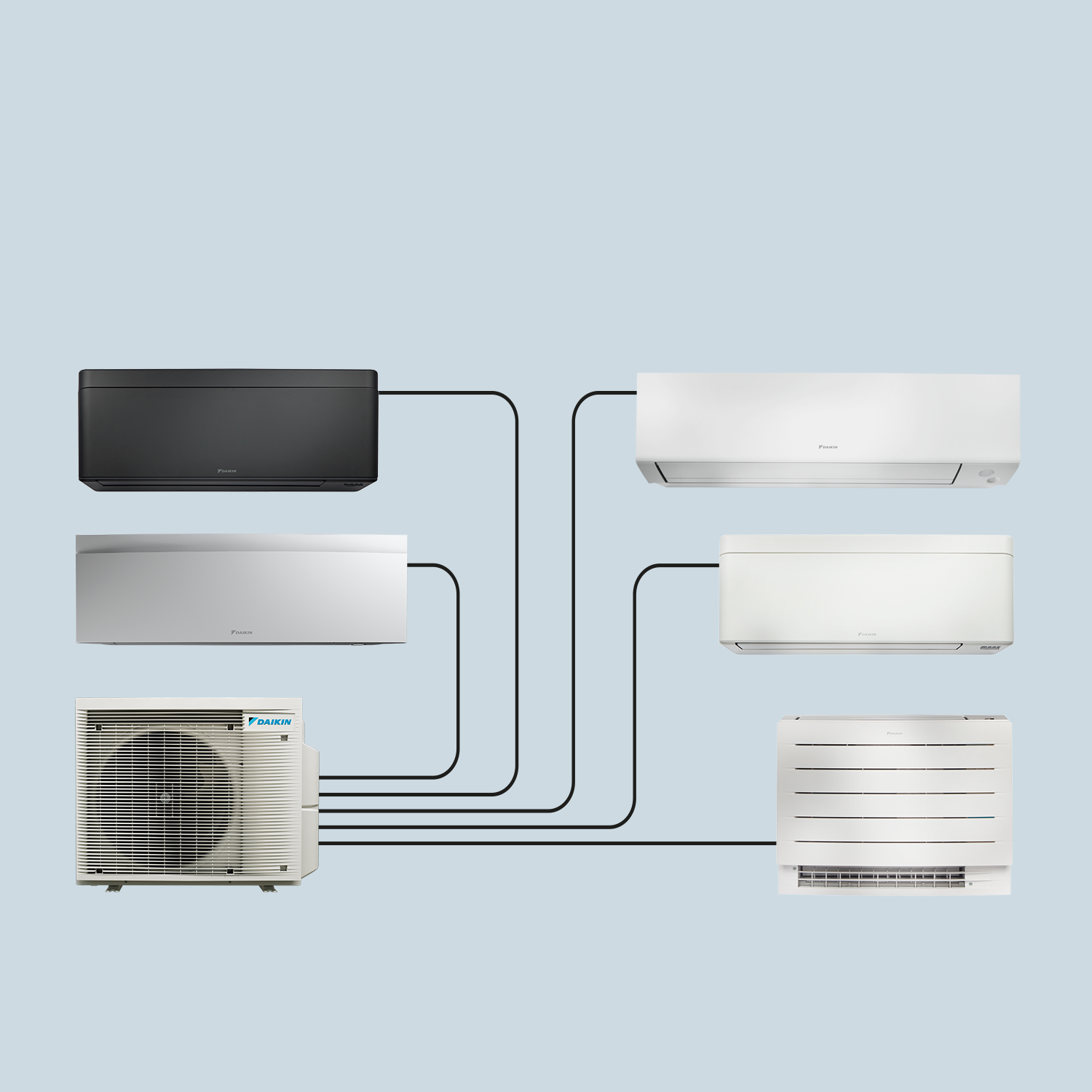 Válassz számos levegő-levegő hőszivattyúnk közül a kültéri egységhez történő csatlakoztatáshoz