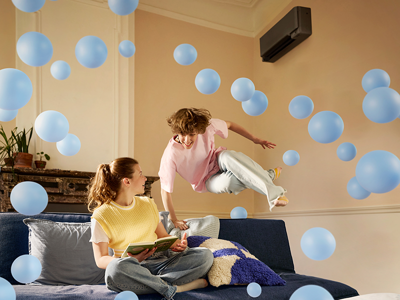 The brand campaign brings attention to something that is often taken for granted: the air around us. The visual concept is a creative expression of how Daikin heat pumps and air purifiers quietly enhance people’s wellbeing. It showcases how Daikin technologies create healthier, more comfortable homes – driven by over 100 years of HVAC1) innovation and expertise. Backed by Daikin’s current leadership as global no. 1 air-conditioning company2) and Europe’s leading manufacturer of hydronic heat pumps3) the brand campaign tells a story about warming, cooling, purifying, and refreshing spaces people live in. Thereby it uses colourful bubbles to visualise the invisible benefits of heat pumps and air purifiers in homes: