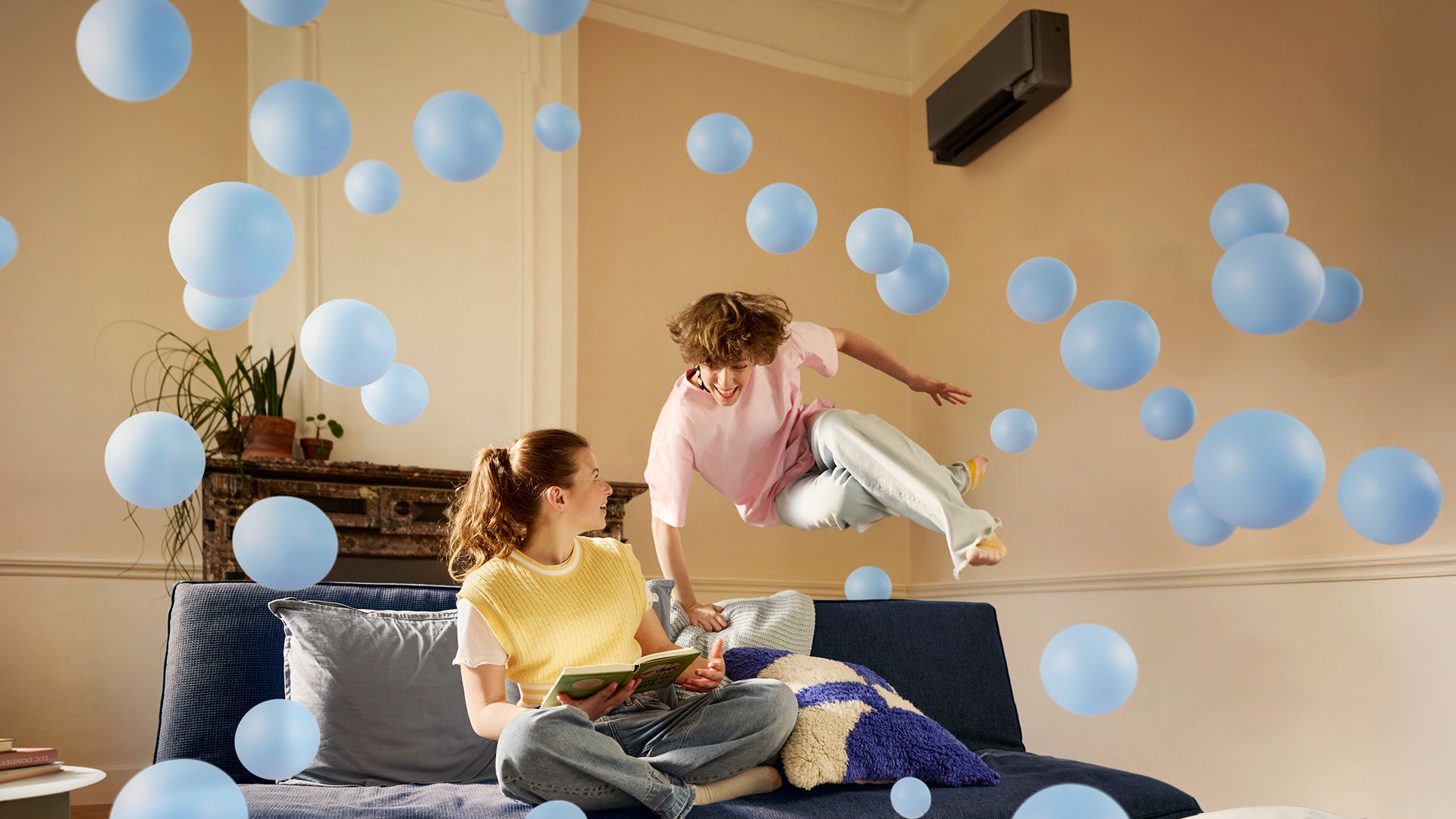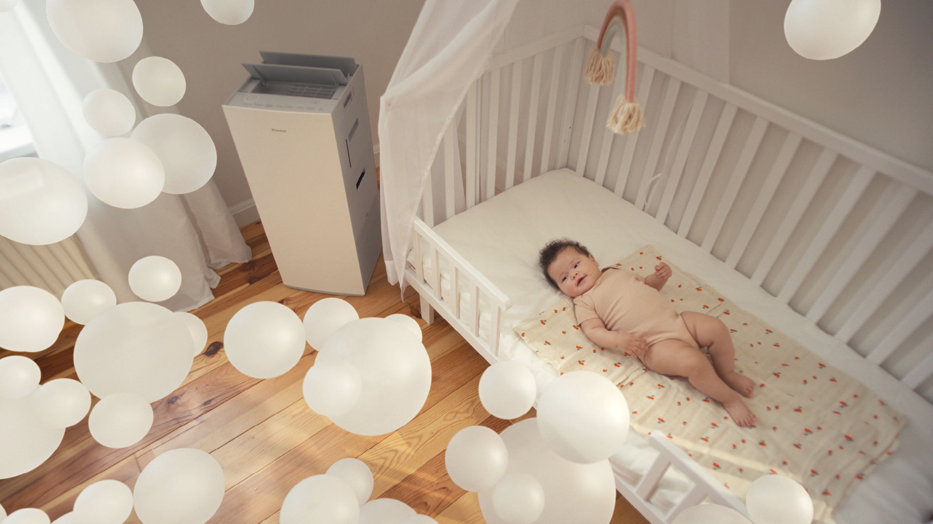 The brand campaign brings attention to something that is often taken for granted: the air around us. The visual concept is a creative expression of how Daikin heat pumps and air purifiers quietly enhance people’s wellbeing. It showcases how Daikin technologies create healthier, more comfortable homes – driven by over 100 years of HVAC1) innovation and expertise. Backed by Daikin’s current leadership as global no. 1 air-conditioning company2) and Europe’s leading manufacturer of hydronic heat pumps3) the brand campaign tells a story about warming, cooling, purifying, and refreshing spaces people live in. Thereby it uses colourful bubbles to visualise the invisible benefits of heat pumps and air purifiers in homes: