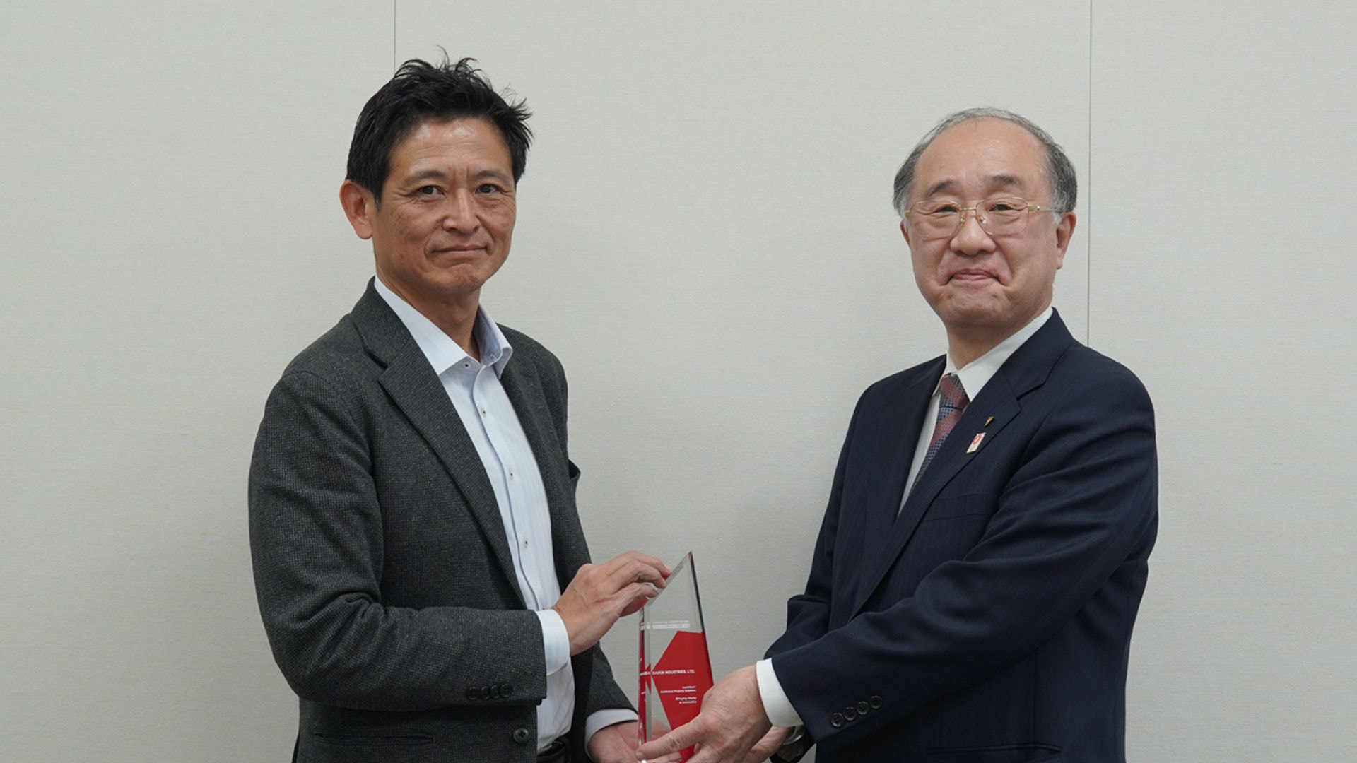 Masafumi Yamamoto (right), Senior Associated Officer in charge of Global Intellectual Property Strategy at Daikin Industries, Ltd., receiving the ‘Innovation Momentum 2025: The Global Top 100’ award from a Lexis Nexis representative